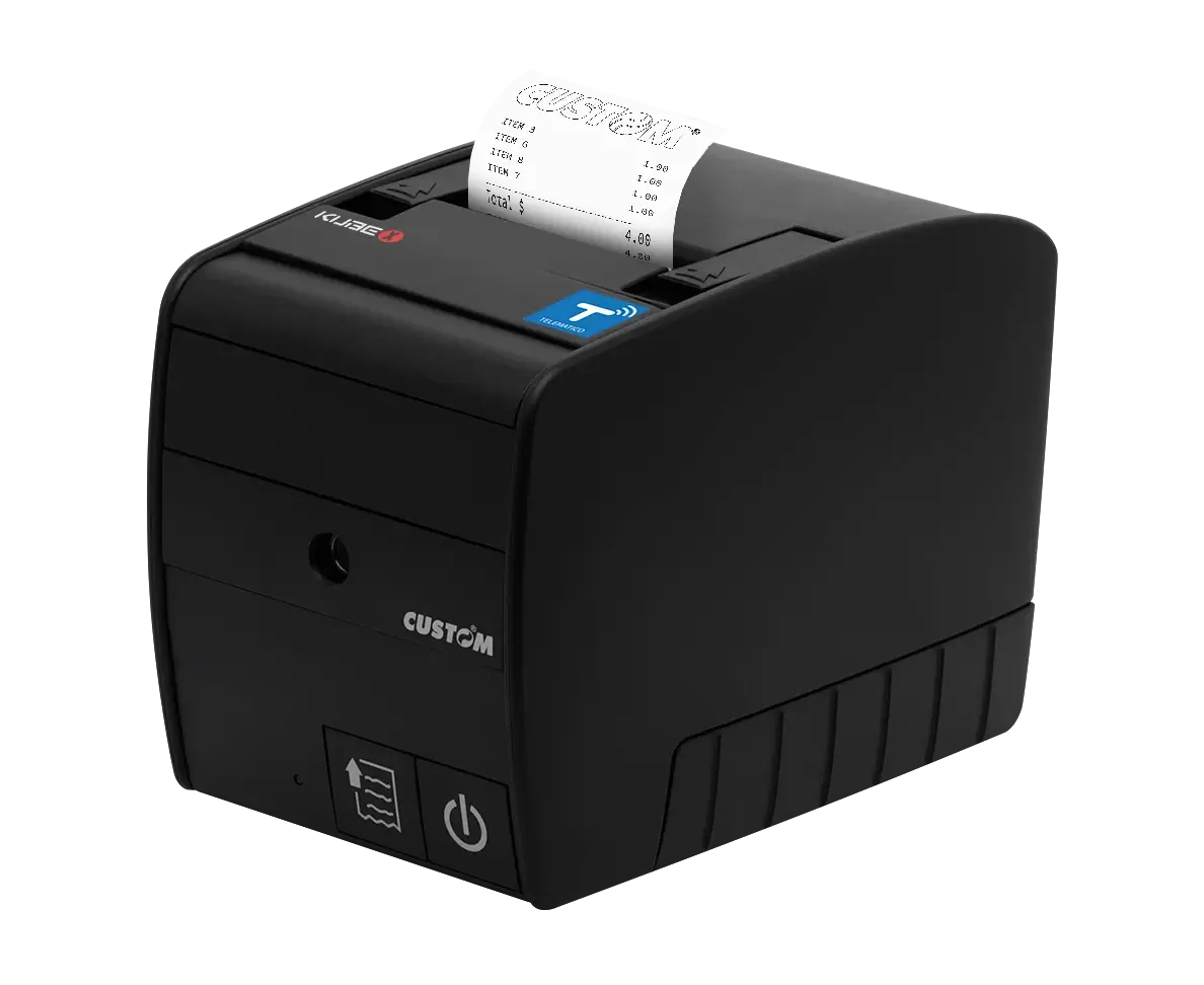 Sfruttando le più moderne tecnologie IT come il processore e un database SQL, KUBE II F RT offre al mercato un prodotto all’apice delle prestazioni, come velocità di stampa 250mm/sec e stampa di coupon grafici senza limitazioni! KUBE II F RT eredita dalla consolidata KUBE F la struttura meccanica e quindi tutti i plus funzionali come cambio rotolo facilitato “SixLoad”, giornale di fondo elettronico (oltre che su MMC anche su SD) e al contempo introduce le innovative tecnologie di programmazione e connessione Seriale e Ethernet. KUBE II F RT coniuga potenza, tecnologia e massima affidabilità, anche grazie all’autocutter che garantisce 2.000.000 di tagli. I protocolli di comunicazione e i drivers disponibili rendono KUBE II F RT immediatamente compatibile e pronta per stampare con ogni applicativo di mercato (plug & play). Stampante con capacità di trasmissione telematica.