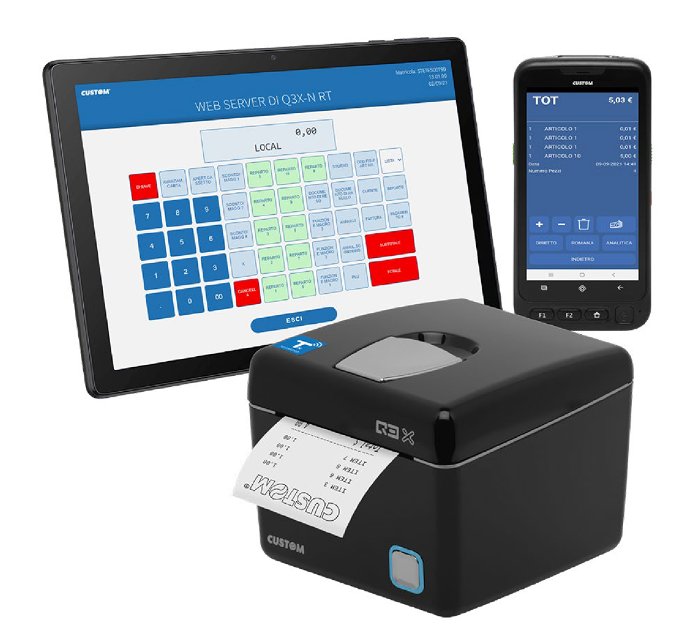Q3X-N RT è la stampante telematica Custom di terza generazione che supporta lo scontrino digitale.