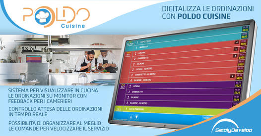 Permette di utilizzare tutte le funzionalità evolute di modifica degli ingredienti di POLDO RistoSoft, ormai divenute famose come la scelta tra set di ingredienti, le modifiche più articolate e le note per la cucina, una gestione evoluta degli happy-hour e l’esclusiva funzionalità dell’ALL-CAN-YOU-EAT, con definizione dei numeri di pezzi per coperto, l’attesa tra una comanda e l’altra, la chiamata cameriere, il menù multi lingua e tante altre funzioni assolutamente necessarie in quei locali che oggi vogliono fare la differenza in qualità e rapidità del servizio.